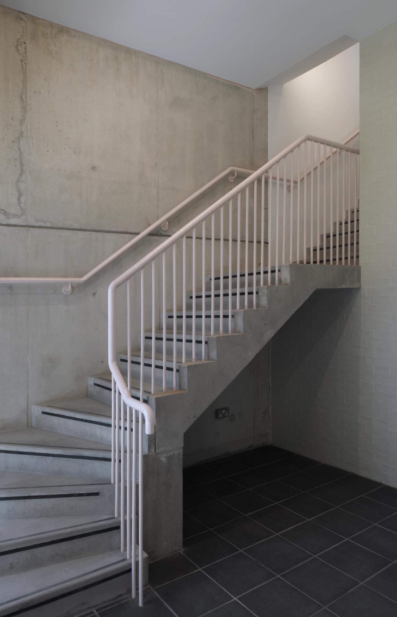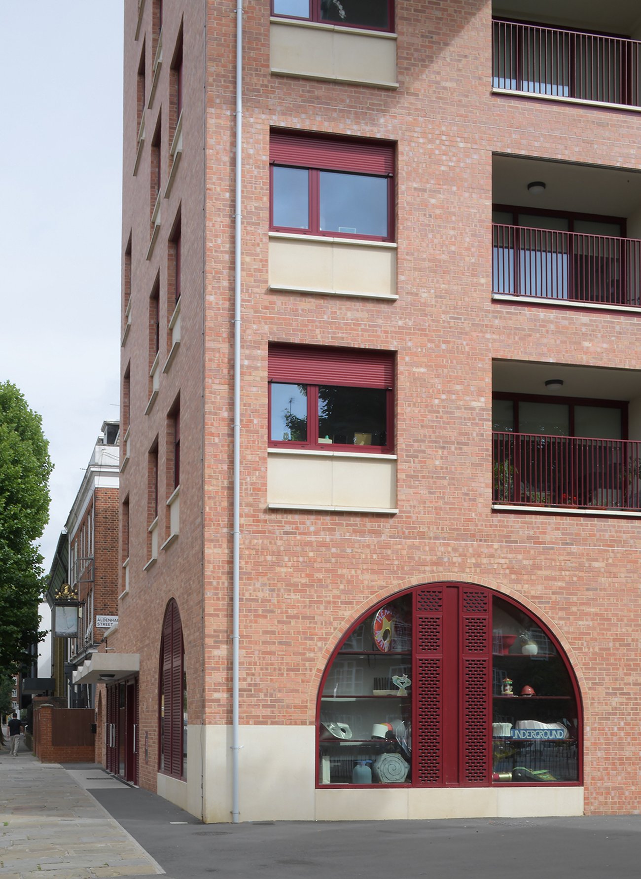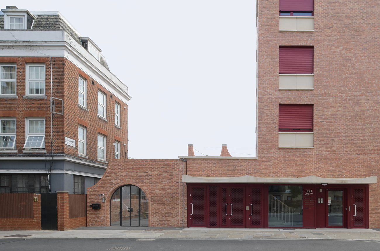 Next door, is a small tower of social rent homes, each triple aspect and designed to minimise energy usage through good thermal mass and resident controlled external blinds. The position on the corner of the park, affirms the scale of the street whilst maintaining a delicate quality, with a gentle swooping top rhyming with its neighbour.