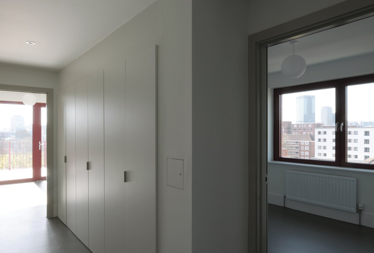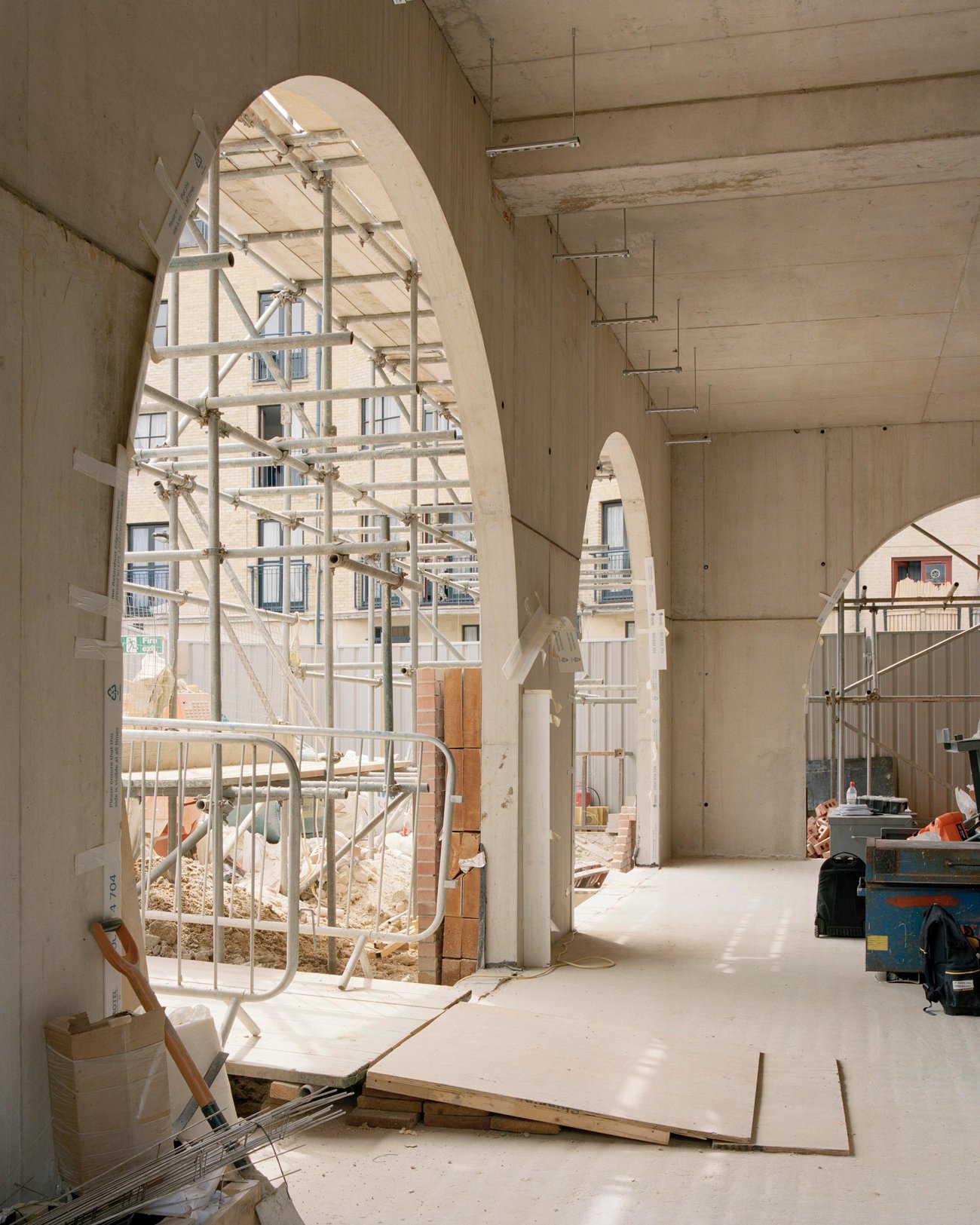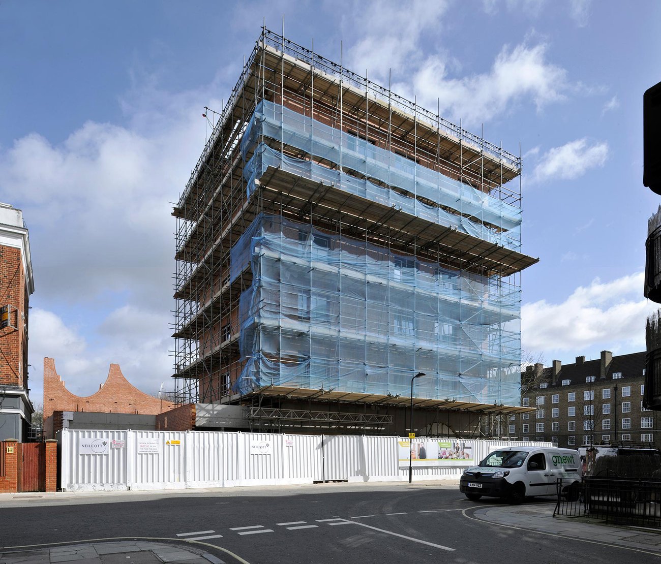 Next door, is a small tower of social rent homes, each triple aspect and designed to minimise energy usage through good thermal mass and resident controlled external blinds. The position on the corner of the park, affirms the scale of the street whilst maintaining a delicate quality, with a gentle swooping top rhyming with its neighbour.