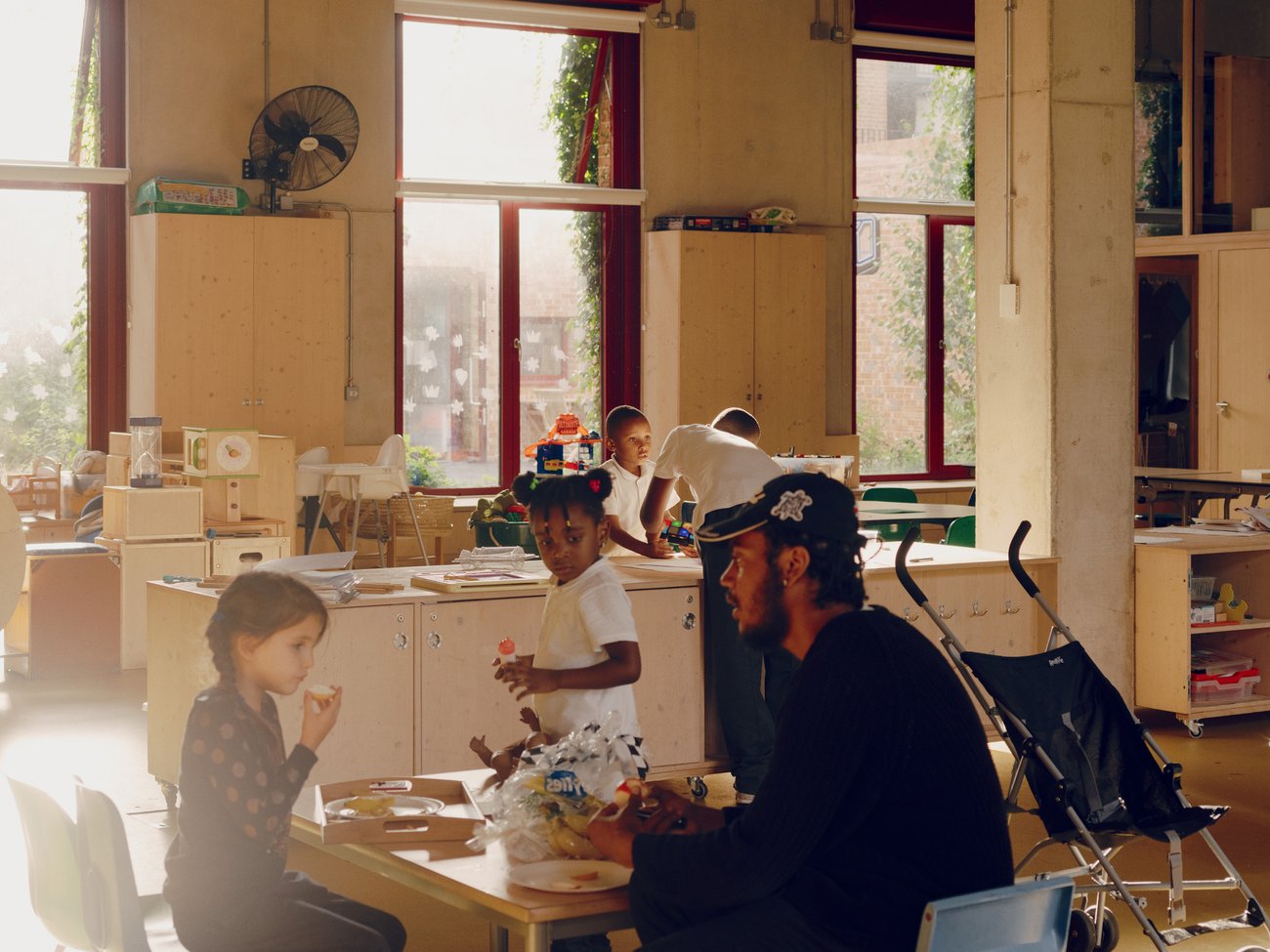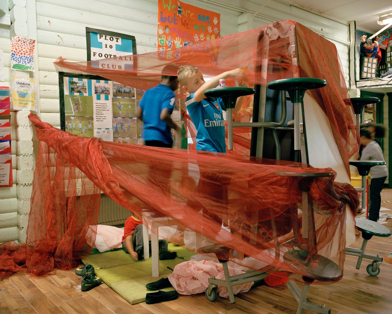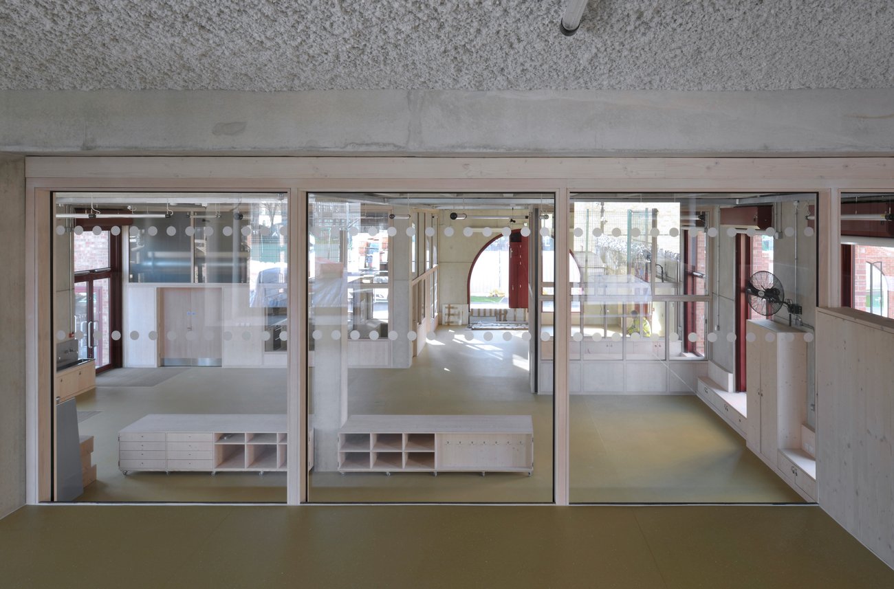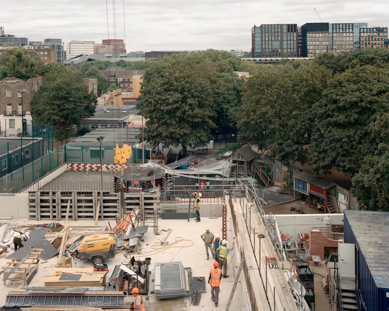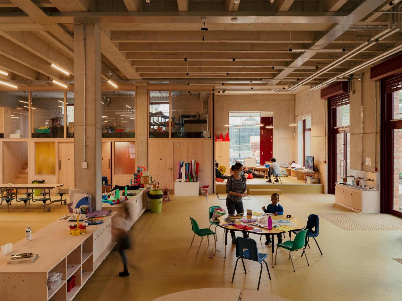 Offering childcare and providing a critical lifeline to working parents since the 1970s we worked with Plot 10, and a local nursery school, from the outset to design the community facilities for them. This spirit of deep engagement continued through the project with exploratory workshops, ethnography and film, to observe the ways children used the existing spaces and structures, prompt design approaches and direct expressions, with neon signage and logos translated by Axel Feldmann.