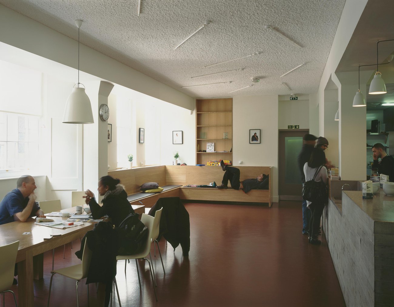 'This is an immensely impressive conversion and small new build extension project. This daycentre for a charity working with the most disadvantaged and vulnerable people in society, provides its users a chance to rebuild shattered lives and enter society. The scheme is exemplary in its understanding of client needs and its engagement with users. Externally the building is beautifully refined and elegant, complementing the existing housing blocks around. Interior spaces are intelligently and intensively multi-used with muted and calm finishes.'