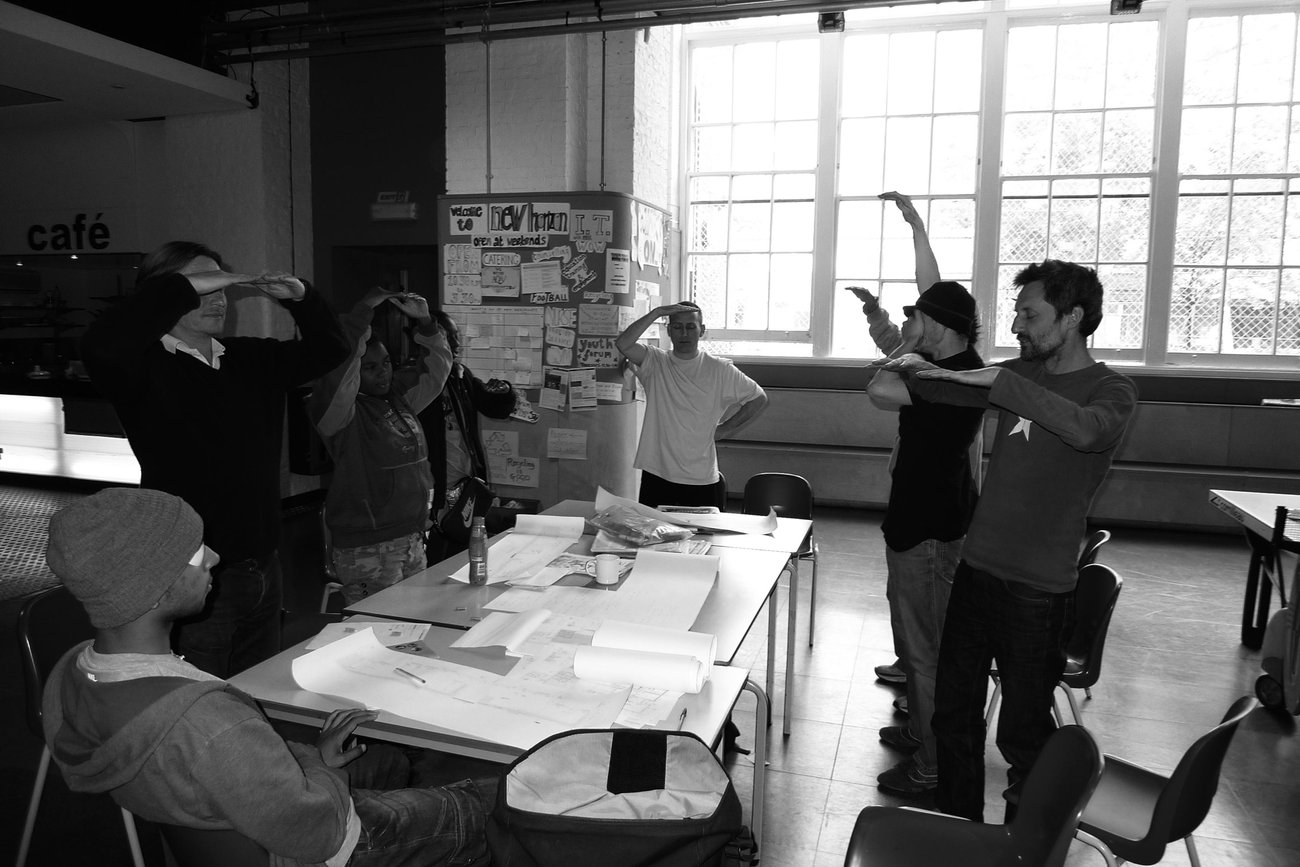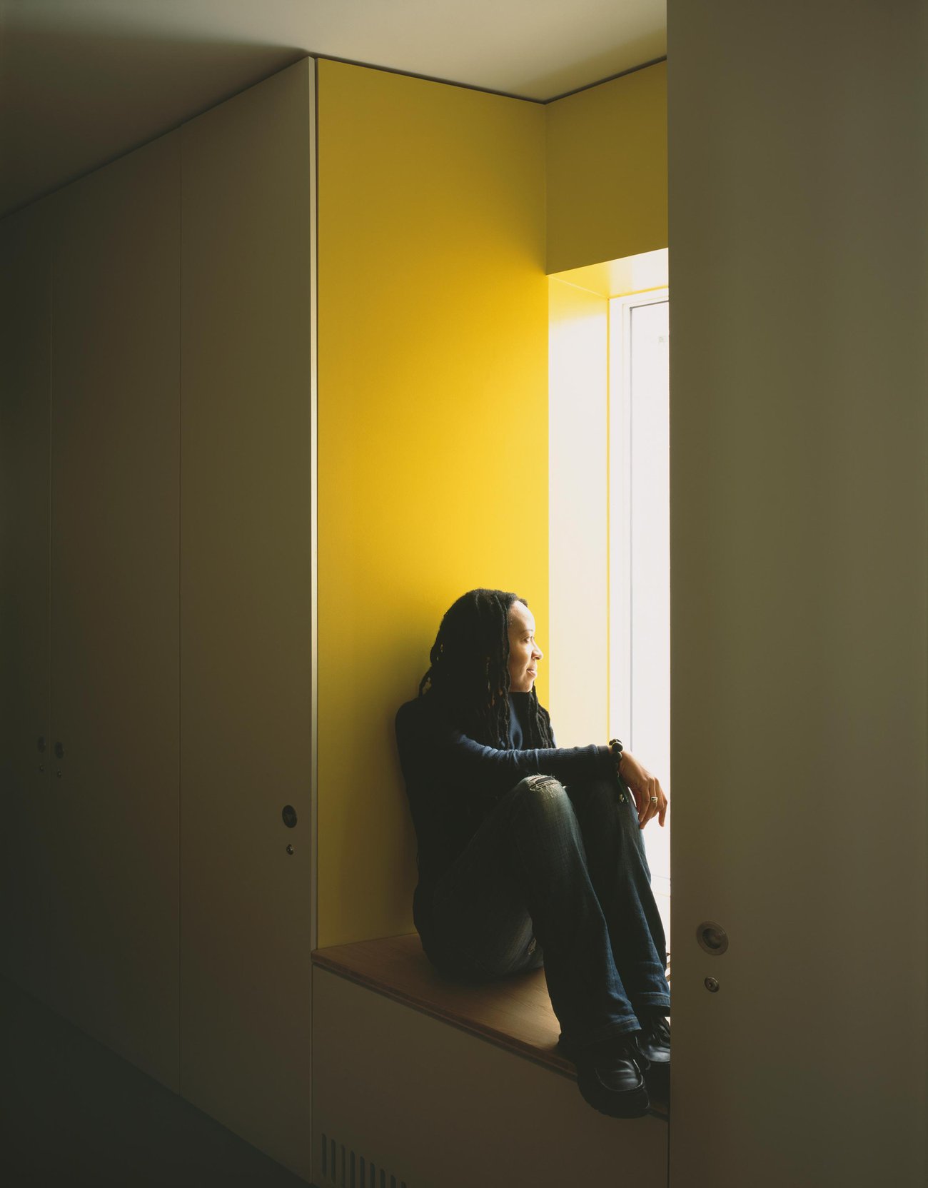 Located on the ground floor of a housing block in Somers Town, the New Horizon Youth Centre has been providing support for young homeless and vulnerable people since 1968. The centre was refurbished and extended to support flexibility for the wide range of activities for individuals and large groups; a calm, big house, offering stability and security. The approach to flexibility is to provide a range of spaces with different characters with spatial generosity; so the stairs are over-wide, giving the opportunity to sit and read on them or have a chat half-way up. The kitchen servery could be used as bar to hang out at or a simple stage for a role playing workshop, and the long wooden table for eating together, playing, chatting - simple and relaxed like a nice settled house. Lots of ways to sit, using the building - busy and communal, or private and quiet, or a dreamy escape up in the roof.